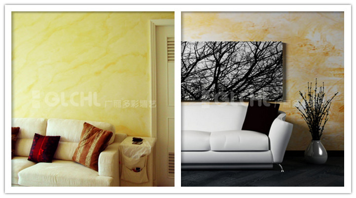 3、藝術涂料最大的賣點除了環保,就是裝飾效果了,廣麗多彩墻藝市場部王經理介紹說:“眾所周知,墻紙有著很漂亮的花紋及質感,但是無論多有技術的施工人員,貼出來的墻紙,都會看得出明顯的接縫,達不到完整一體的裝飾效果,而藝術涂料,除了可以做出墻紙一樣的花紋和手感,還可以實現顏色和花紋完全量身訂制,就是說客戶喜歡什么顏色的花,想要什么風格的裝飾效果,都能全做出來,要讓墻面復古還是時尚,全由客戶作主,這點,目前只有墻藝藝術涂料能做到”