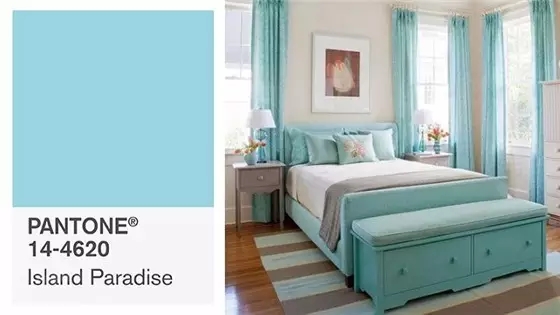 天堂島是一個(gè)令人耳目一新的水嫩色調(diào),被用來(lái)轉(zhuǎn)換情境。清涼的藍(lán)綠色韻,充份說(shuō)明我們成功脫逃的偉大夢(mèng)想,天堂島是象征性的熱帶場(chǎng)域和我們放松身心的渴望。猜得到這顏色的靈感是源自于海洋中的島嶼,感覺相當(dāng)夢(mèng)幻,不管是穿起這個(gè)顏色去度假還是窩在點(diǎn)點(diǎn)海藍(lán)的小家中,都是相當(dāng) relax。